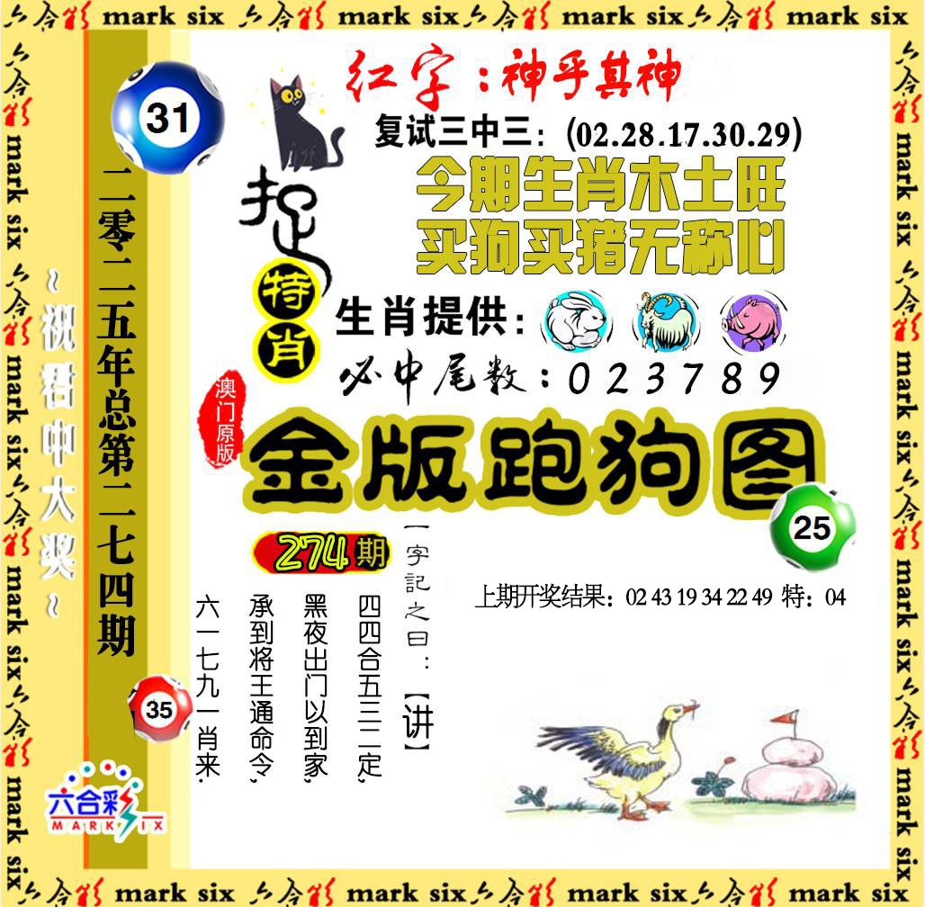274期金版跑狗图[图]